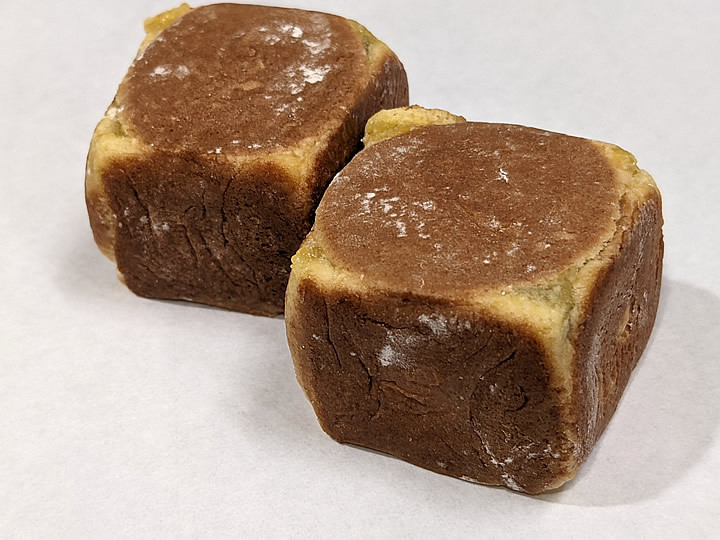 | 江戸にきんつばがあれば京都には六方焼がおます。 きんつばより優れている所と言えば皮の部分の卵が入って厚みがあり、より風味が増しているというかカステラ生地っぽくなって、旨みが増してるとこやと思います(もちろんきんつばはきんつばで美味い!) 中の餡はこしあんでございます。 六角形のサイコロ型で、六方を焼き上げて作るので「六方焼」 もうちょっと捻ったスイな名前を付けて欲しかったけど昔から六方焼やから仕方が無いですね。 祇園饅頭さんの六方焼は京都美山産の平飼い卵を原料に、銅板でひとつひとつ転がしながら焼き上げます。 素材の味が楽しめる飾らない京都の生菓子です。 ※この商品は冷蔵品とも同梱できますが、冷やすと食感が変化しますので、できるだけ常温便商品とご一緒に購入される事をお勧めします 祇園饅頭について 創業文政年間、京都祇園南座のお隣で商いを200年続けておられる、祇園町の町衆御用達の「おまんや」さんです。 リーズナブルな価格設定でありながら、伝統に裏付けされた手作りの味わいで多くのファンを持つお店です 代表的な商品に、志んこやにっき餅などがある |