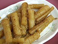 | エネルギー:65kcal タンパク質:1.4g 脂質:0.4g 炭水化物:14.7g 食塩相当量:0.6g |