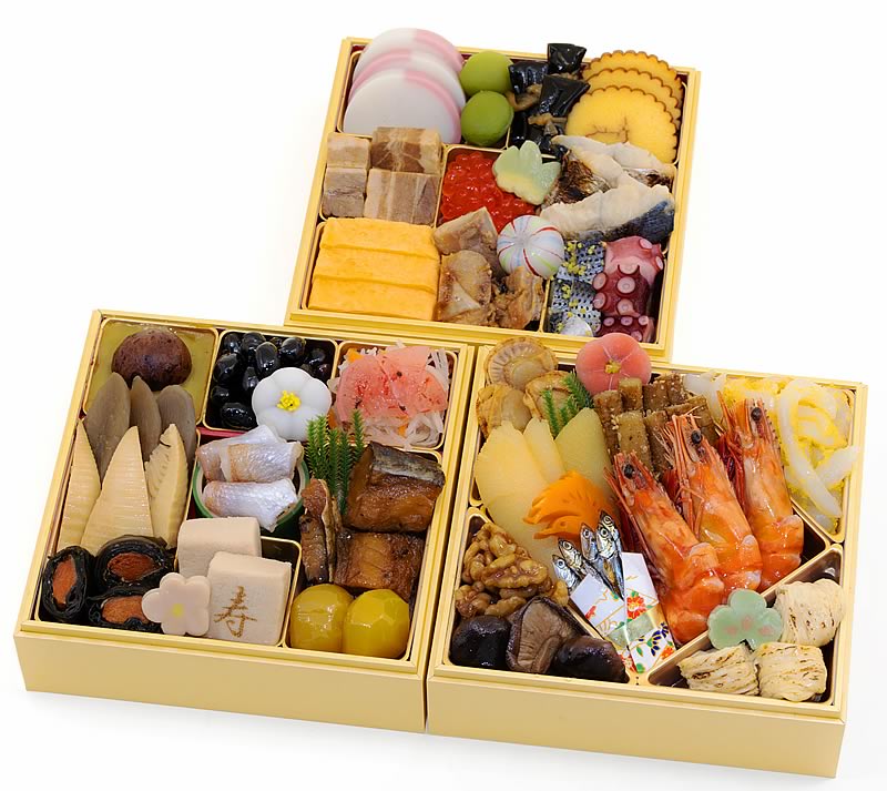| ●味付数の子:数の子(アメリカ)、発酵調味料、醤油風調味料(醤油、食塩、砂糖)、鰹削り節、醤油、風味調味料(かつお)/調味料(アミノ酸等)、(一部に小麦・乳成分・大豆を含む) ●丸たたき牛蒡:牛蒡(国産)、水飴、醤油、砂糖、胡麻、醸造酢/調味料(アミノ酸等)、ビタミンC、乳酸Ca、(一部に小麦・ごま・大豆を含む) ●焼き湯葉巻:湯葉(タイ製造)、砂糖、醤油、風味調味料(かつお)、食塩/調味料(アミノ酸等)、(一部に小麦・乳成分・大豆を含む) ●祝海老:海老(ベトナム)、発酵調味料、醤油風調味料(醤油、食塩、砂糖)、風味調味料(かつお)/調味料(アミノ酸等)、(一部にえび・小麦・乳成分・大豆を含む) ●椎茸ふくませ煮:椎茸(国産)、発酵調味料、砂糖、醤油風調味料、醤油、還元水飴/調味料(アミノ酸等)、(一部に小麦・大豆を含む) ●てり焼き帆立:ほたて貝(国産)、醤油、還元水飴、砂糖、鰹節エキス、食塩/ソルビトール、調味料(アミノ酸等)、グリシン、酢酸Na、着色料(カラメル)、pH調整剤、リン酸塩(Na)、ショ糖エステル、酵素、香料、(一部に小麦・卵・さば・大豆を含む) ●紅梅餅:米粉(国内製造)、砂糖、小豆、もち粉、麦芽糖、白あん、還元水飴、食塩/酵素、着色料(紅麹、クチナシ)、(一部に乳成分・大豆を含む) ●いかの魚卵和え:いか(ベトナム又はマレーシア)、数の子、還元水飴、砂糖、食塩、麦芽糖、カラフトししゃも卵、発酵調味料、醤油、醸造酢、昆布抽出物/酒精、調味料(アミノ酸等)、酸味料、酸化防止剤(ヒマワリ種子)、着色料(アナトー、ウコン)、酵素、香料、(一部に小麦・いか・大豆を含む) ●寿鶴人参味付け:人参(国産)、砂糖、醤油風調味料、食塩/調味料(アミノ酸等)、ビタミンB1、(一部に小麦・大豆を含む) ●菓子くるみ:くるみ(アメリカ)、還元水飴、砂糖、醤油、水飴、寒天、(一部にくるみ・小麦・大豆を含む) ●まつ麩:小麦たんぱく(国内製造)、もち米粉、白だし(食塩、砂糖、醤油、かつお節、その他)、米粉、砂糖/トレハロース、着色料(クチナシ、紅麹)、調味料(アミノ酸等)、(一部に小麦・大豆を含む) ●ごまめ:かたくちいわし(国産)、砂糖、醤油、水飴、醤油風調味料(醤油、食塩、砂糖)、唐辛子/調味料(アミノ酸等)、(一部に小麦・大豆を含む) |