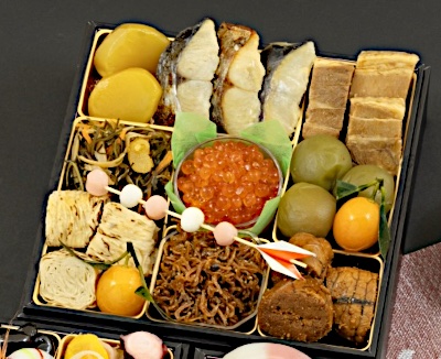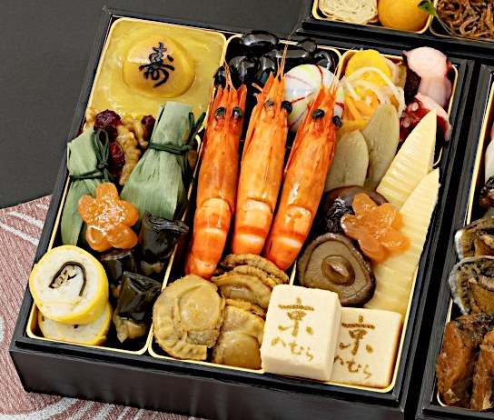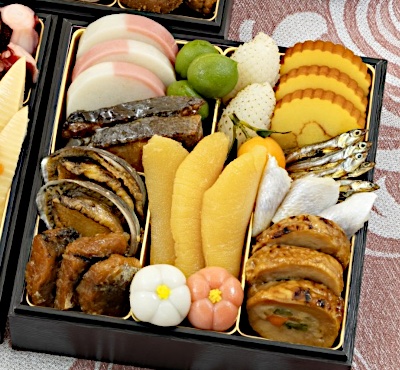 | 厳選素材で丁寧に仕上げたおせちが、家族の新年を晴れやかに彩ります。 3人分のちょうどよいボリュームで、味も想い出も心に残るひとときを。 定番おせちだけではなく、ちりめん山椒やゆば巻などが入った京都ならではの三段重です。 一の重![]() 味付数の子:数の子(アメリカ)、発酵調味料、醤油風調味料(醤油、食塩、砂糖)、鰹削り節、醤油、風味調味料(かつお)/調味料(アミノ酸等)、(一部に小麦・乳成分・大豆を含む) 田作り:かたくちいわし(国産)、砂糖、醤油、水飴、醤油風調味料(醤油、食塩、砂糖)、唐辛子/調味料(アミノ酸等)、(一部に小麦・大豆を含む) 鱈のうま煮:たら(アメリカ)、砂糖、醤油、水飴、寒天/調味料(アミノ酸等)、ミョウバン、増粘多糖類、酸味料、(一部に小麦・大豆を含む) 紅白蒲鉾:魚肉(スケトウダラ(アメリカ)、シログチ)、卵白、食塩、みりん、砂糖、魚介エキス、大豆粉末/トレハロース、加工デンプン、ソルビトール、調味料(アミノ酸等)、着色料(トマト色素)、(一部に小麦・卵・大豆を含む) 伊達巻:鶏卵(国産)、砂糖、魚肉、でん粉、発酵調味料、食塩、植物油/加工デンプン、(一部に小麦・卵・大豆を含む) 白梅餅:米粉(国内製造)、砂糖、小豆、もち粉、麦芽糖、白あん、還元水飴、食塩/酵素、着色料(クチナシ)、(一部に乳成分・大豆を含む) 紅梅餅:米粉(国内製造)、砂糖、小豆、もち粉、麦芽糖、白あん、還元水飴、食塩/酵素、着色料(紅麹、クチナシ)、(一部に乳成分・大豆を含む) ぶりの照り焼き:ぶり(国産)、醤油、砂糖、みりん、還元水飴、発酵調味料、水飴/増粘剤(加工デンプン)、着色料(カラメル)、pH調整剤、(一部に小麦、大豆を含む) いか白焼き:いか(ベトナム)、砂糖、醤油、発酵調味料、食塩/酒精、pH調整剤、調味料(アミノ酸)、(一部に小麦・いか・大豆を含む) 小鯛の酢漬:キダイ(国産)、醸造酢、砂糖、食塩、昆布 葉付金柑:金柑(国産)、砂糖 若桃シロップ漬:若桃(国産)、砂糖/酸味料、酸化防止剤(ビタミンC)、香料、(一部にももを含む) 若鳥野菜巻:鶏肉(中国)、にんじん、いんげん、糖類(砂糖、水飴)、ごぼう、醤油、みりん、植物性たん白、食塩/pH調整剤、増粘剤(加工デンプン、キサンタンガム)、ポリリン酸Na、調味料(アミノ酸)、着色料(カラメル)、(一部に小麦、大豆、鶏肉を含む) 殻付あわび煮:あわび(中国)、みりん、鰹節エキス、昆布エキス、油、砂糖/ソルビトール、着色料(カラメル)、調味料(アミノ酸等)、トレハロース、香料、(一部に小麦、あわび、大豆を含む) 二の重![]() 牛蒡にしめ:牛蒡(国産)、醤油、還元水飴、砂糖、発酵調味料、風味調味料(かつお)/トレハロース、調味料(アミノ酸等)、酸味料、乳酸Ca、増粘多糖類、pH調整剤、(一部に小麦・乳成分・大豆を含む) 筍にしめ:筍(国産)、醤油、砂糖、還元水飴、風味調味料(かつお)/調味料(アミノ酸等)、(一部に小麦・乳成分・大豆を含む) 焼き海老:ブラックタイガーエビ(スリランカ)、食塩/酸化防止剤(エリソルビン酸Na、V.C、亜硫酸塩)、pH調整剤、グリシン、(一部にえびを含む) 柚子入り生酢:大根(国産)、柚子、醸造酢、砂糖、人参、醤油風調味料(醤油、食塩、砂糖)、食塩、醤油/酒精、酸味料、調味料(アミノ酸等)、(一部に小麦・大豆を含む) 味付け梅型こんにゃく:こんにゃく(こんにゃく粉(国産))、たん白加水分解物、砂糖、みりん、鰹節エキス/調味料(アミノ酸等)、糊料(加工デンプン)、水酸化Ca(こんにゃく用凝固剤)、着色料(パプリカ) 黒豆ふくませ:黒大豆(国産)、砂糖、食塩、(一部に大豆を含む) 昆布巻:昆布巻(昆布(国産)、干瓢)、水飴、醤油、還元水飴、砂糖、異性化液糖、寒天/調味料(アミノ酸等)、(一部に小麦・大豆を含む) 椎茸ふくませ煮:椎茸(国産)、発酵調味料、砂糖、醤油風調味料(醤油、食塩、砂糖)、醤油、還元水飴/調味料(アミノ酸等)、(一部に小麦・大豆を含む) 錦糸巻:カラスガレイ(アイスランド)、薄焼き玉子(鶏卵、デンプン、その他)、味付生姜(塩漬生姜、砂糖、その他)、調味酢、味付昆布、砂糖、ゼラチン、発酵調味料、食塩、(一部に小麦・卵・ゼラチン・大豆を含む) てり焼き帆立:ほたて貝(国産)、醤油、還元水飴、砂糖、鰹節エキス、食塩/ソルビトール、調味料(アミノ酸等)、グリシン、酢酸Na、着色料(カラメル)、pH調整剤、リン酸塩(Na)、ショ糖エステル、酵素、香料、(一部に小麦・卵・さば・大豆を含む) 手まり和菓子:米粉(国内製造)、砂糖、小豆こしあん、もち粉、麦芽糖、還元水飴、食塩/酵素、着色料(紅麹、アカダイコン、スピルリナ青)、(一部に大豆を含む) 酢蛸:ゆで蛸(国内製造)、砂糖、醸造酢、砂糖混合ぶどう糖果糖液糖、食塩、梅酢、発酵調味料/調味料(アミノ酸等)、酸味料、酸化防止剤(ビタミンC)、ミョウバン、pH調整剤、(一部に小麦を含む) クランベリーくるみ:ドライクランベリー(アメリカ製造)、くるみ、還元水飴、デーツシロップ、砂糖、水飴、食塩、寒天、(一部にくるみを含む) 寿焼印栗甘露:栗(韓国)、砂糖/酸化防止剤(ビタミンC)、ミョウバン、着色料(クチナシ) 笹