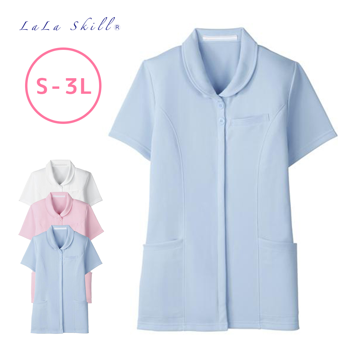 白衣 女性 医療 やわらかタッチのラウンドカラーチュニックのナース服 制菌 吸汗速乾 ララスキル F-6000 S~3L【OFF ¥1000】