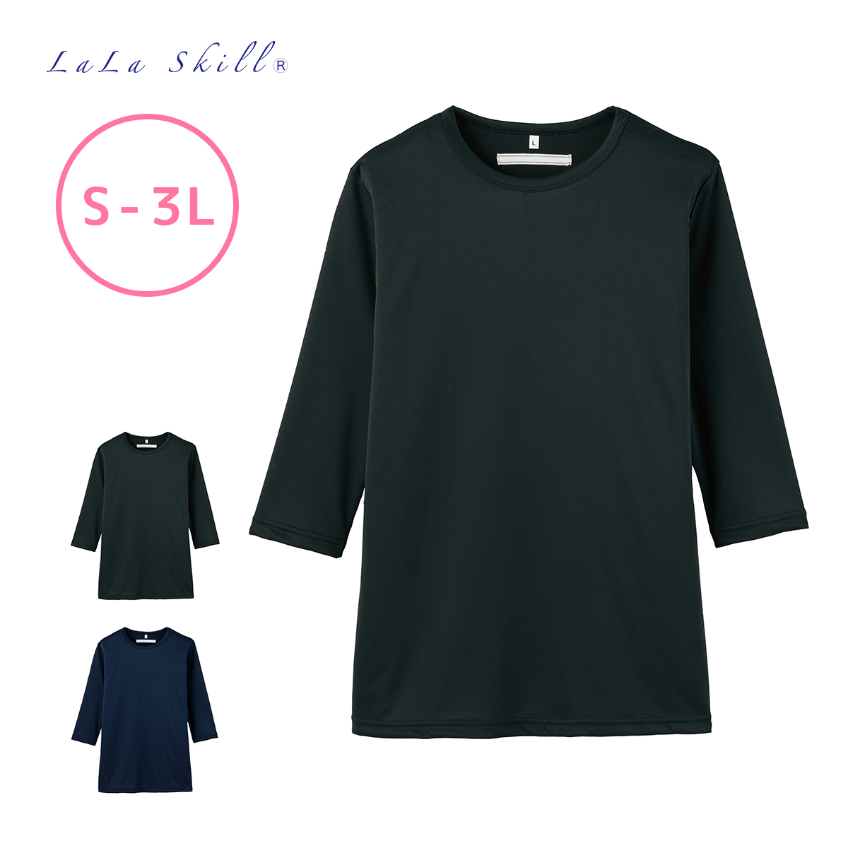 白衣 スクラブ レディーススクラブ用Tシャツ 七分袖 制菌 消臭 防汚 白衣 医療 ララスキル FY-3005【OFF ¥360】