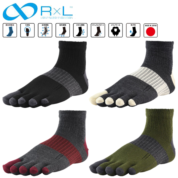 R×L アールエル M-MULTI メリノウール ソックス 5本指 靴下 スポーツ MWS5002 マラソン トレイル トレーニング 立体製法 クッション 武田レッグ メール便可