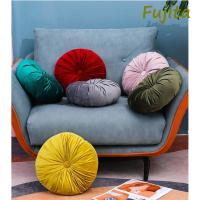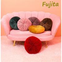 クッション おしゃれ ラウンドクッション フロアクッション 丸型 座布団 円形 かわいい プリーツ ベルベット 丸いクッション 北欧