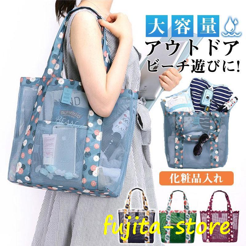 ビーチバッグ プールバッグ 海 トートバッグ 水泳バック 軽量 メッシュ 大容量収納 化粧品入れ おしゃれ ジム 旅行 水着収納 肩がけ