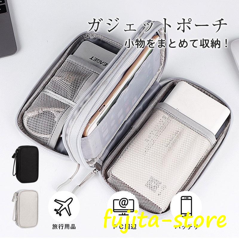 ガジェットポーチ 充電器ポーチ トラベルポーチ 収納ポーチ 小物入れポーチ 2層収納バッグ 出張 旅行 軽量