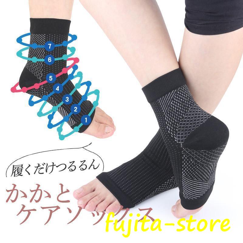 履くだけで繊維クッションがかかとの衝撃を吸収する、かかとクッションサポーターです。