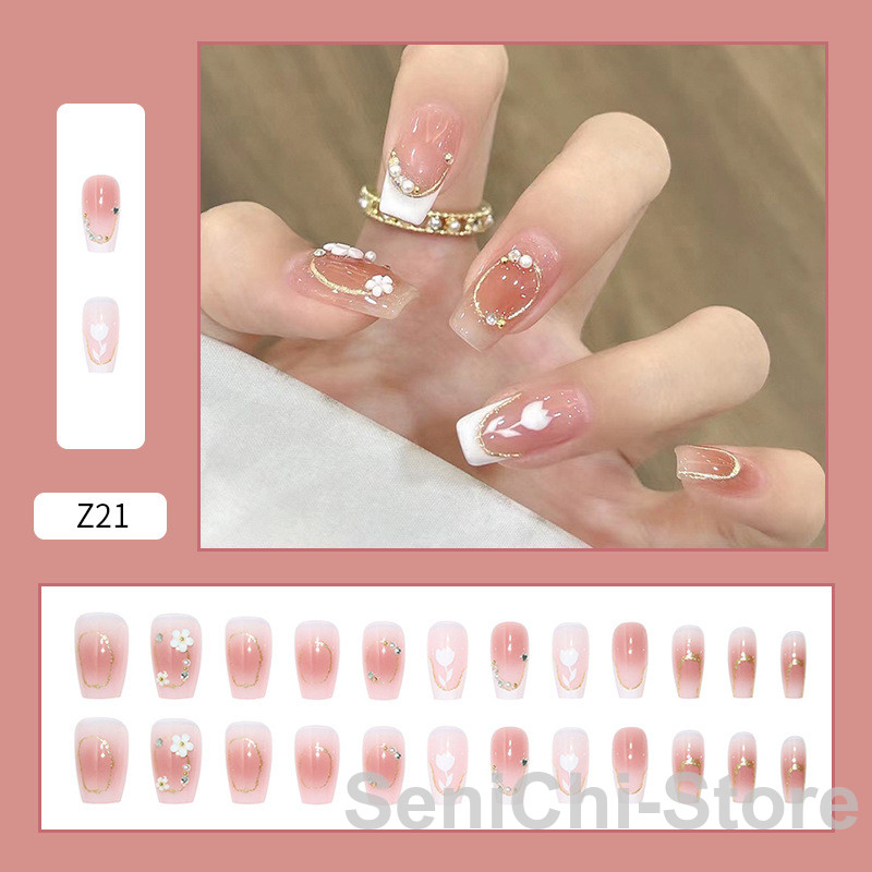 ネイルチップ ショート シール ハート かわいい  24枚入り グミシール付き つけ爪 ショートオーバル 着脱簡単 ファッション