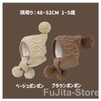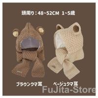 キッズ フードマフラー 耳あて帽子 一体 女の子 男の子 冬 ニット帽 保育園 防寒 くま耳 ポンポン ベージュ ブラウン 冬物 ベビー帽子 萌え 可愛い