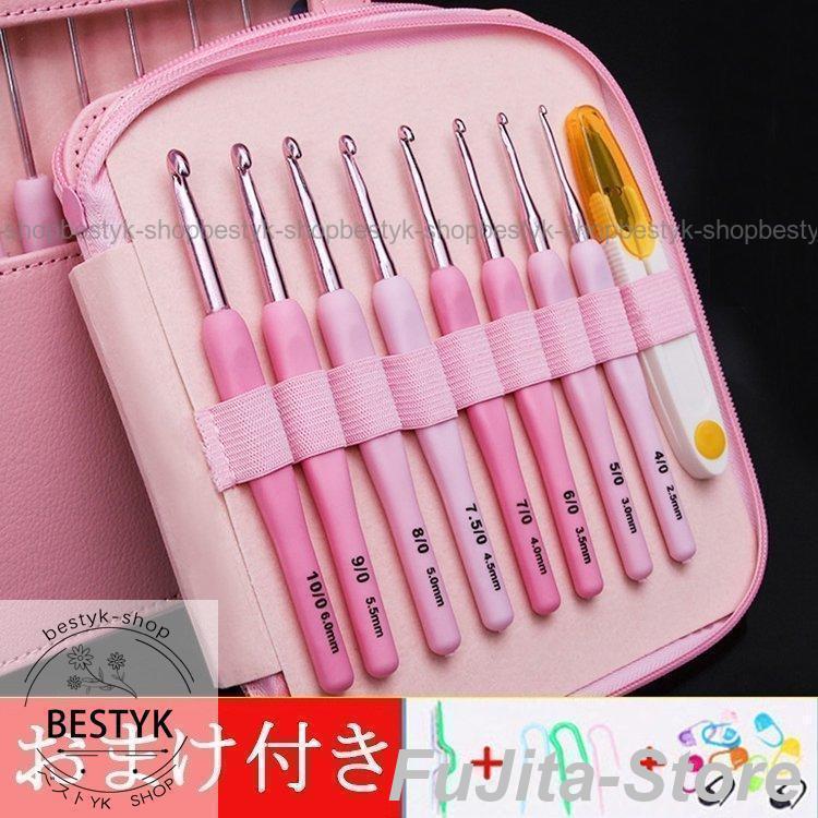 ■セット内容:ピンク系8本セット(2.5-6.0mm) +pu収納ケース+おまけの編み物小物(段数マーカー、プラスチック縫い針など)