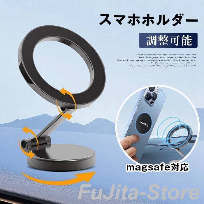 スマホホルダー 調整可能 360度 マグネット magsafe対応 車載ホルダー スマホスタンド 角度調整 車 スタンド 回転 ズレない 固定 車載スマホホルダー 折りたたみ 車用 車内 車載 スマホ iPhone iPad