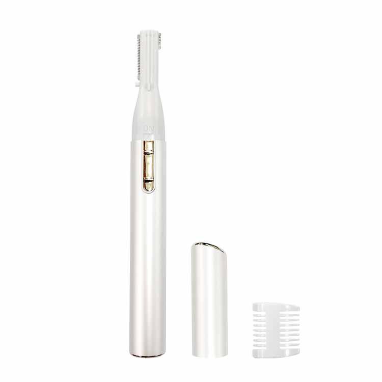 両面刃の採用で細かい眉の整えから、広範囲の顔のうぶ毛もカット。刃先は丸く加工されており安全設計なので、はじめての方でも安心してお使いいただけます。眉の長さも付属のマユコームを装着すれば簡単カット。電源は単4形アルカリ乾電池1本。スイッチ入れて肌にあてるだけ。スリムなデザインとキズに強い高級感あるアルミボディは持ち運びも自由です。