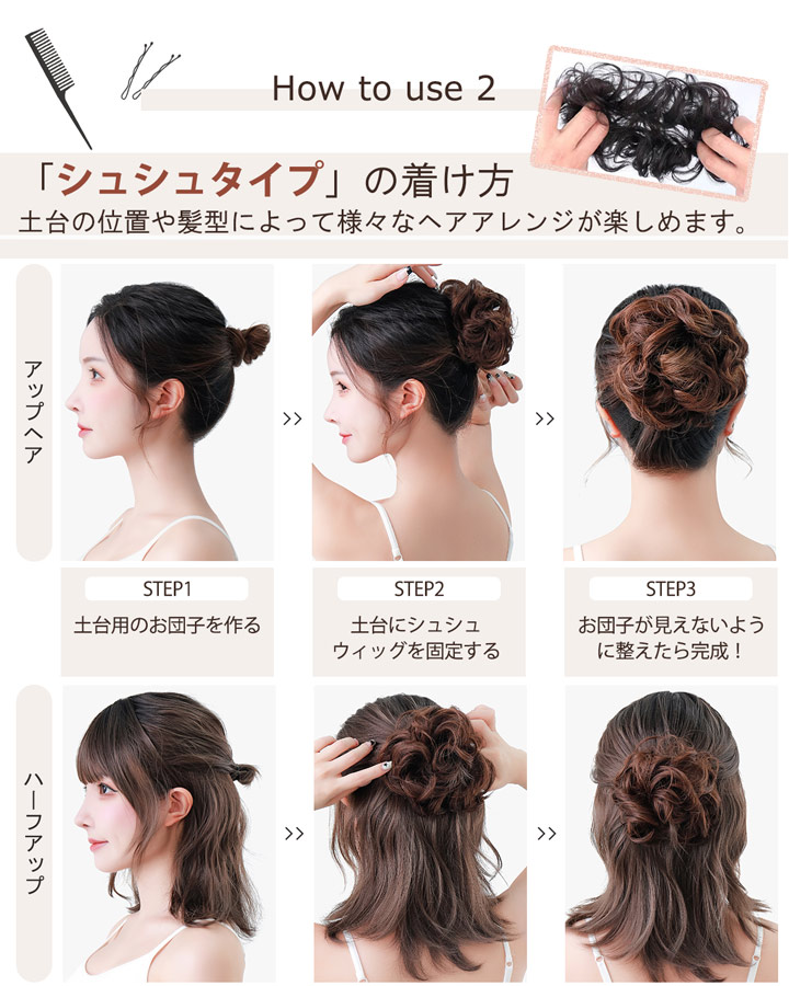 | お団子ヘアのアレンジにおすすめの便利グッズです。ゴム入り仕様で誰でも簡単にオシャレなお団子ヘアが作れる優れもの。 | |