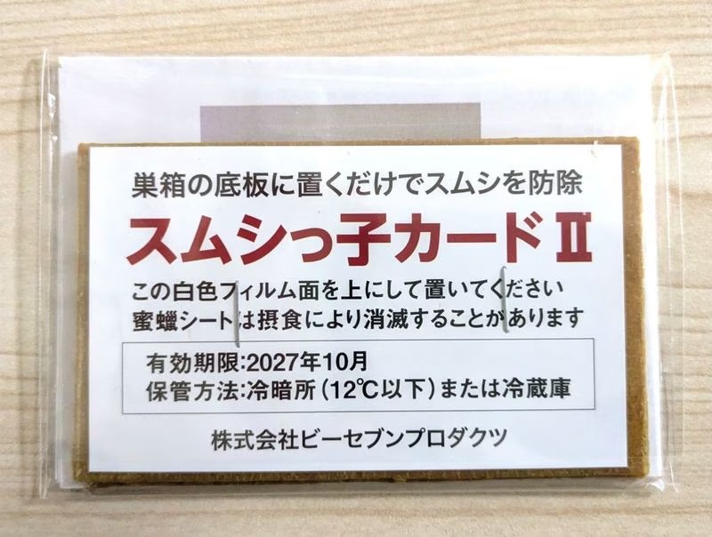| 商品説明 | 巣箱の底版に置くだけでスムシを防除 2枚入りの商品で、巣箱1箱に2枚置いて使用 スムシっ子カードの改善版です BT剤を使用してスムシを防除するため、ミツバチにとって安全で無害です。 |
