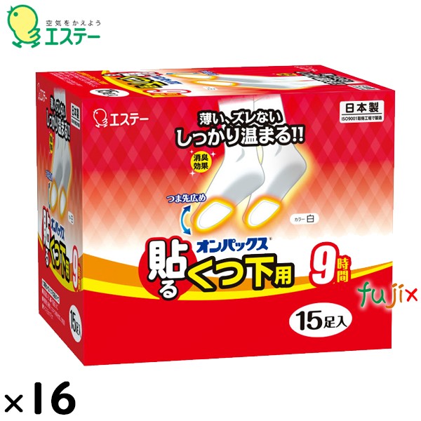 使い捨てカイロ 貼るオンパックス くつ下用 白 240個(15個×16)/ケース 45402 エステー