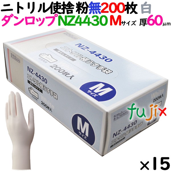 ニトリルグローブ 厚手 NZ-4430 ホワイト 粉なし Mサイズ 200 枚×15小箱/ケース ダンロップ 【爆買】