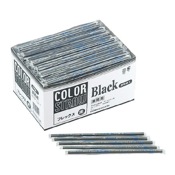 | 商品名 | フレックスストロー 業務用 フジ フレックスストロー 黒色 透明袋入 6400本(400本×16小箱)/ケース |