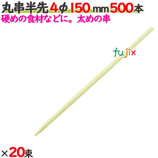 丸串半先 4φ 150mm 10000本(500本×20束)/ケース 【たか印】 【竹串】 【業務用】 【15cm】