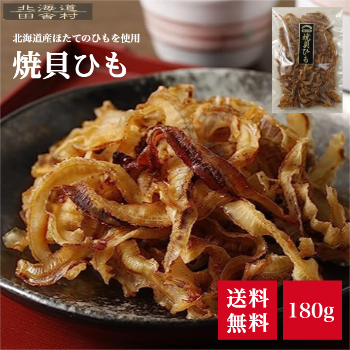 北海道産 焼貝ひも 180g 【送料無料】ほたて 帆立みみ おつまみ 珍味 不二屋 国産 貝ひも、帆立ミミ 帆立耳 ホタテ