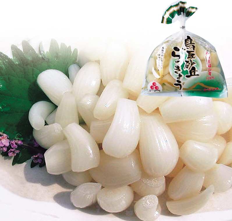 南北2km東西16kmに渡る鳥取砂丘の砂地で栽培された色白で形のきれいならっきょうをシャリシャリっと甘酢に漬けました。
