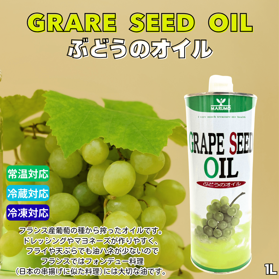 まるもの「グレープシードオイル 1L」は、フランス産の良質なぶどうの種子から圧搾プレス法で抽出された、完全無添加の植物油です。