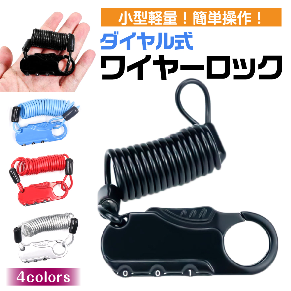 自転車 鍵 ワイヤーロック ダイヤル式 盗難防止 バイク ロック ヘルメット 旅行 キッズ 防犯 小型 軽量 カラビナ スノボ スキー ケーブル マルチ