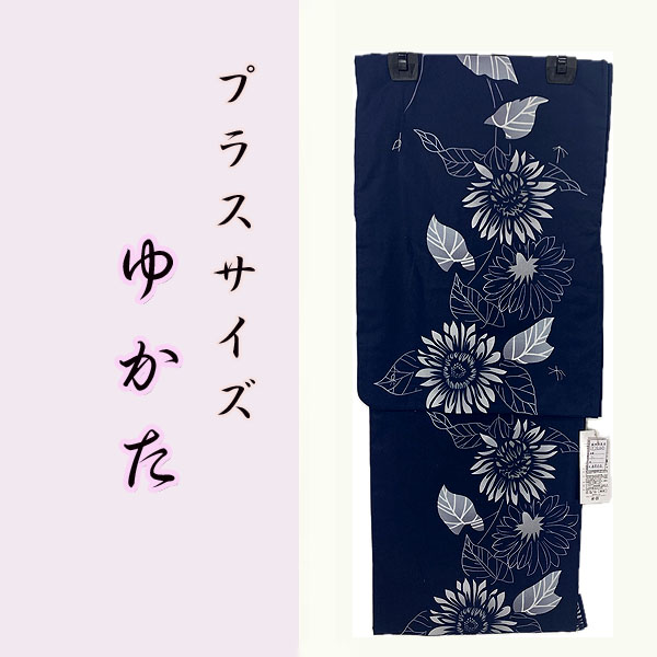 プラスサイズ女物浴衣 kjyw25-12-ll 紺地 ひまわり 夏 ゆかた 大人レディース 単品 祭り 花火 イベント