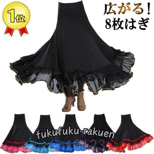 ランキング1位! 広がる スカート レディース ガールズ 社交ダンス衣装 ダンス スカート ベリーダンス フラメンコ 衣装 社交ダンス サーキュラースカート ダンス衣装 ロングスカート フレアスカート ロング ラテンダンス ファルダ ヒップホップ シフォンフリル トライバル 8枚はぎ 黒 赤 ミカドレス