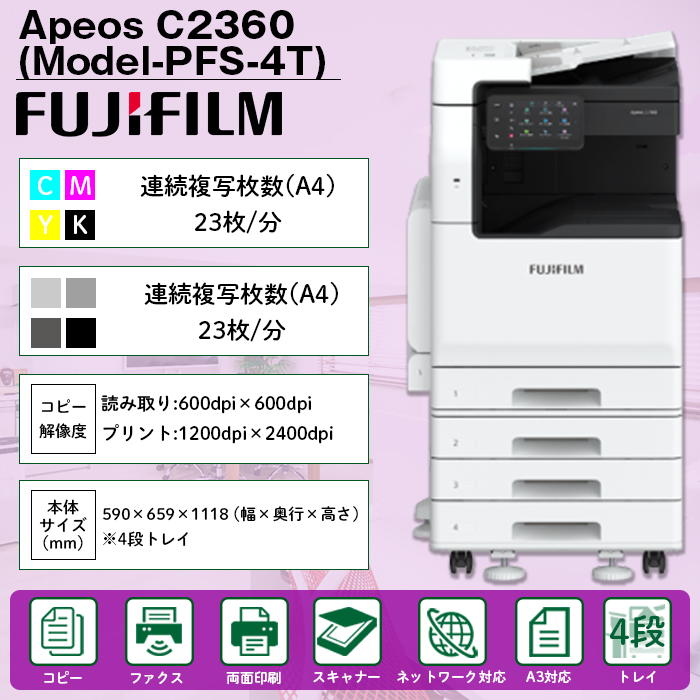 複合機 業務用 本体 FUJIFILM 富士フイルム Apeos C2360 4段 カラー23枚/分 モノクロ23枚/分 FAX プリンタ スキャナ A3 カラー