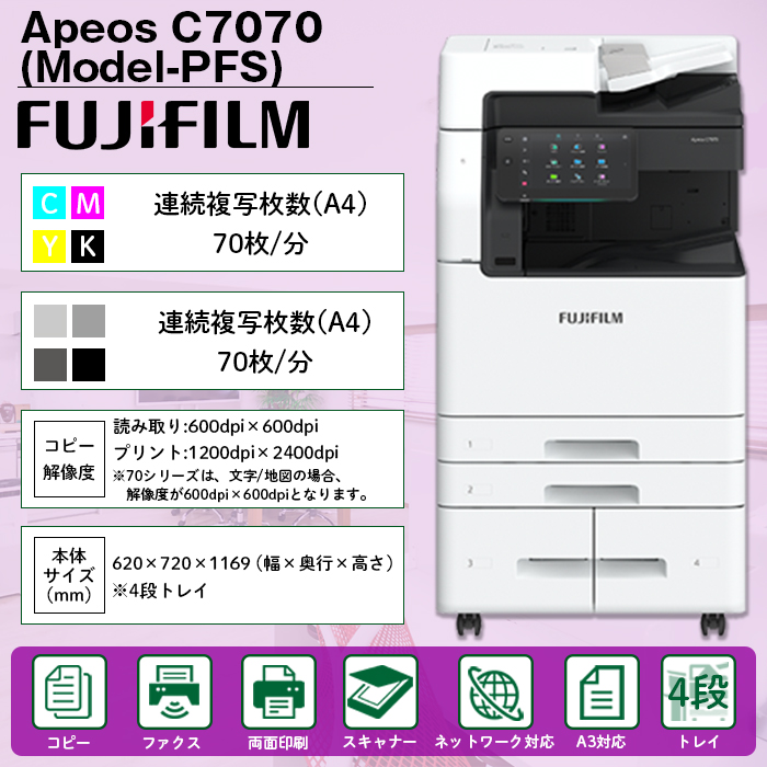 複合機 業務用 本体 FUJIFILM 富士フイルム Apeos C7070 4段 カラー70枚/分 モノクロ70枚/分 FAX プリンタ スキャナ A3 カラー