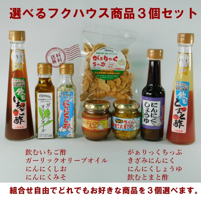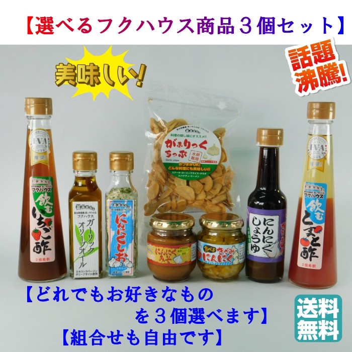飲む酢 にんにく調味料 【選べるフクハウス商品 3個セット】 化粧箱入り 送料無料 にんにく製品 調味料 ギフト 免疫力 アホエン有効成分 ギフト 誕生プレゼント