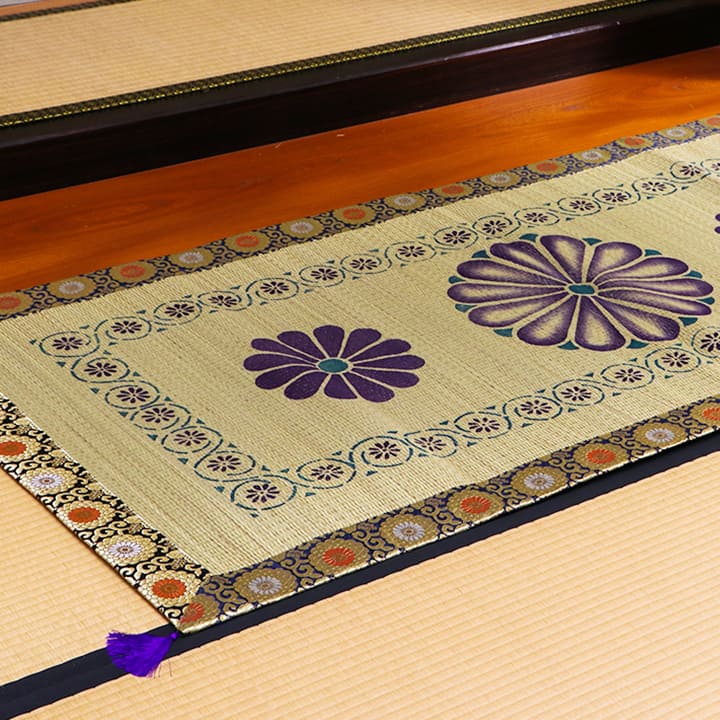 日本製 い草 御前ござ 盆 法事 仏前 捺染 菊柄 約88×180cm