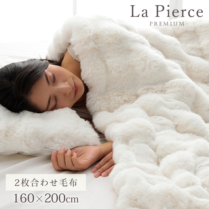 毛布 ブランケット 2枚合わせ毛布 秋 冬 フェイクファー 韓国インテリア 海外風 暖かい ふわもこ おしゃれ 洗える かわいい ラビットファー調 大人かわいい おしゃれ 北欧 姫系 ふわふわ ホワイトインテリア アイボリー セミダブル 約160×200cm