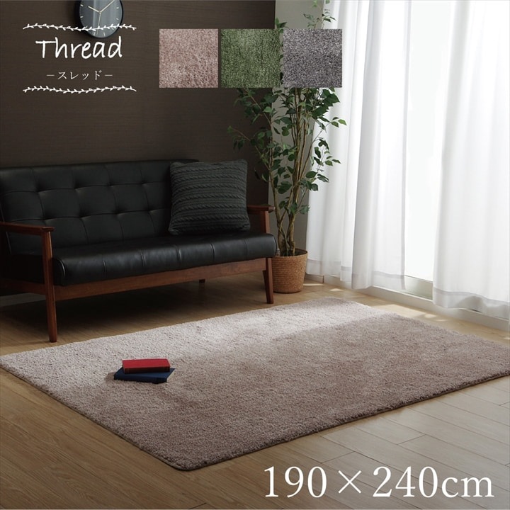 ラグ 3畳 無地 シャギー調 滑り止め付き 選べる3色 スレッド 【ベージュ】 約190×240 9616289