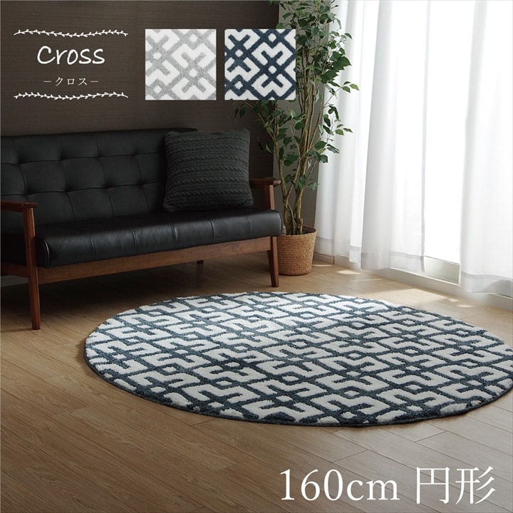 ラグ 円形 北欧柄 滑り止め付き 【ネイビー】 約160 9629149