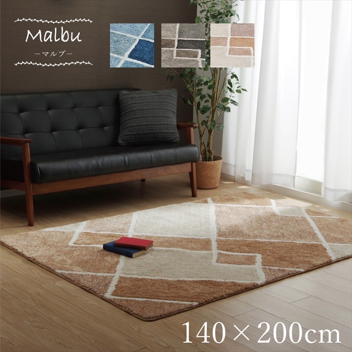 ラグ カーペット 1.5畳 幾何柄 手洗い可 滑り止め付き 選べる3色 マルブ ベージュ 約130×190cm