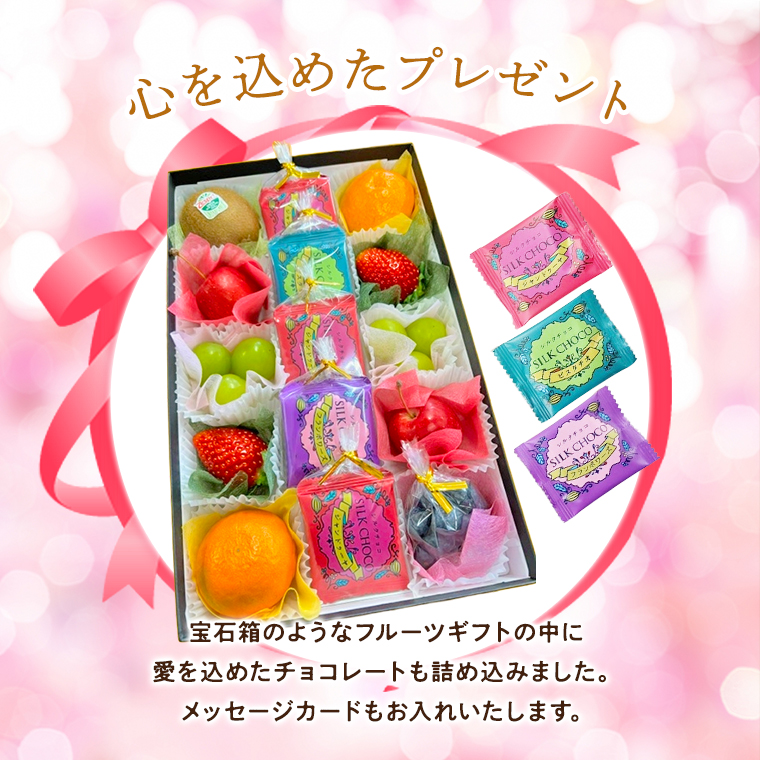 バレンタイン チョコ入り果物ギフト【フルーツジュエリーBOX15個入りセット ブランドチョコレート2〜3種10枚入り】フルーツ チョコレート 母の日