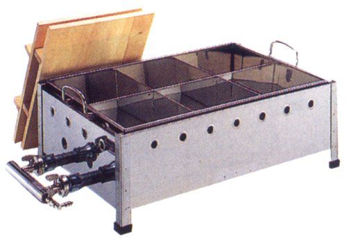 18-8おでん鍋燗付6仕切りは、ガス直火で釜を加熱しますので、調理の立ち上げ時間を短縮できます。6仕切りタイプです。お買い上げ時はガス種をご指示ください。