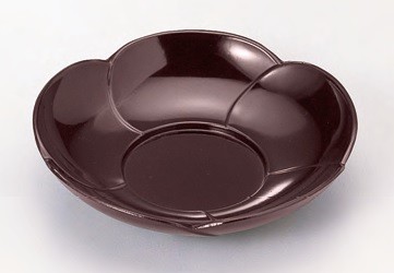 梅茶托 溜4寸です。材質は、メラミン複合樹脂です。木質で、質感が木製に近くソフトな手ざわりです。