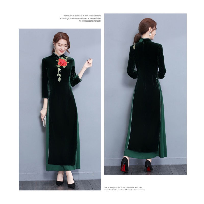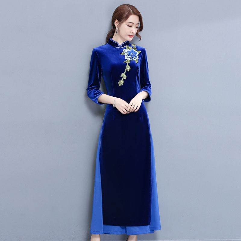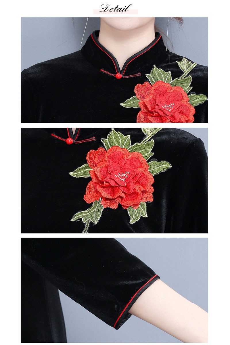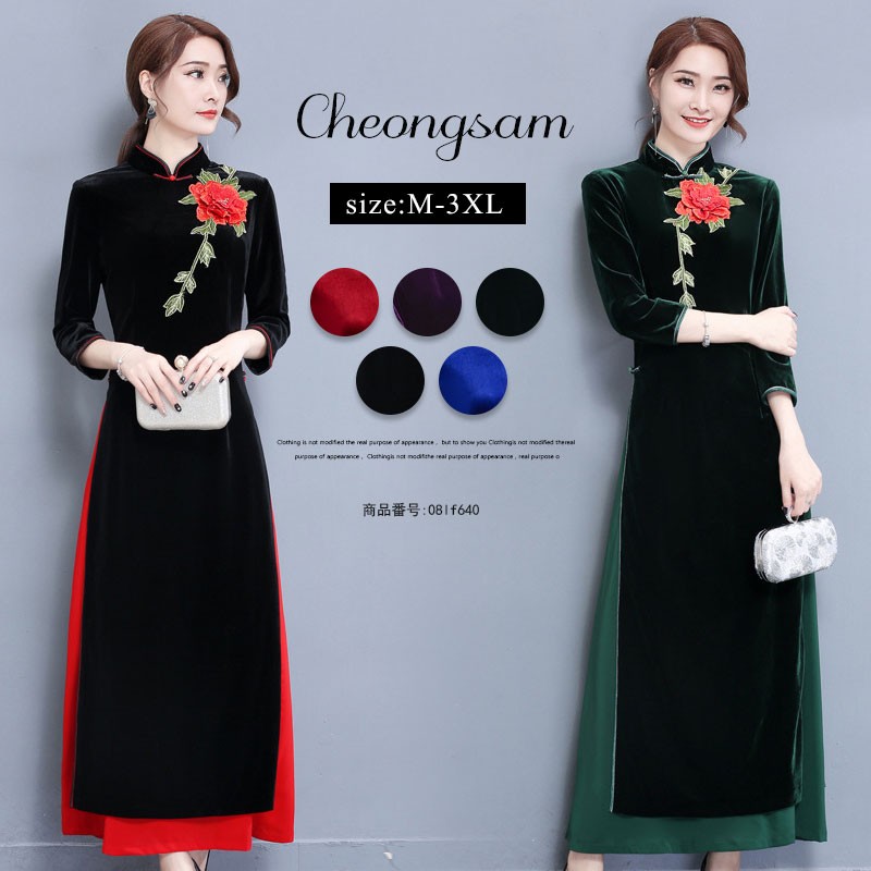 チャイナドレス レディース チャイナ服 7分袖 ロング パーティードレス ドレス セクシー ワンピース 花柄 スリット 大きいサイズ ベルベット 結婚式 披露宴
