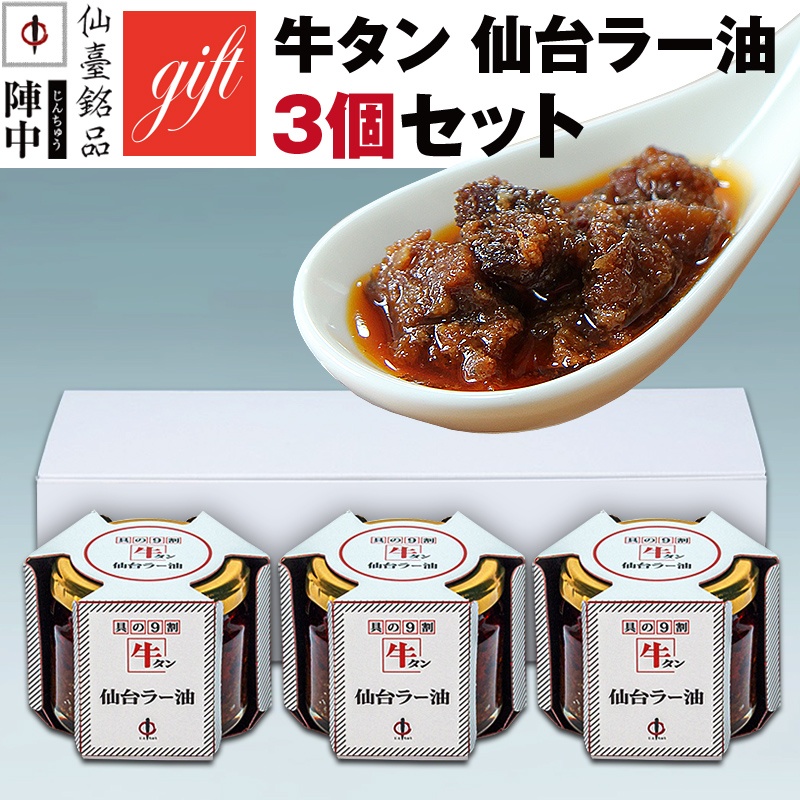 陣中 牛タン 仙台ラー油(3個)詰合せ ギフト箱入り ギフト包装・熨斗付き