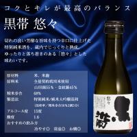 吟醸仕込みと純米仕込みとでキレの良い芳醇な旨味を持つ辛口に仕上げ、さらに蔵内でじっくりと熟成させた、ゆったりと落ち着きのある「悠々(ゆうゆう)」とした味わいです。黒帯のはじまりの酒であり、最もスタンダードな黒帯で、昭和51年の発売以来、金沢の料理屋を中心に味覚のプロ達に鍛えられてきました。辛口ながら辛さを感じさせず、燗にするとやわらかく一層持ち味を発揮します。刺身、寿司など魚料理との相性が抜群です。