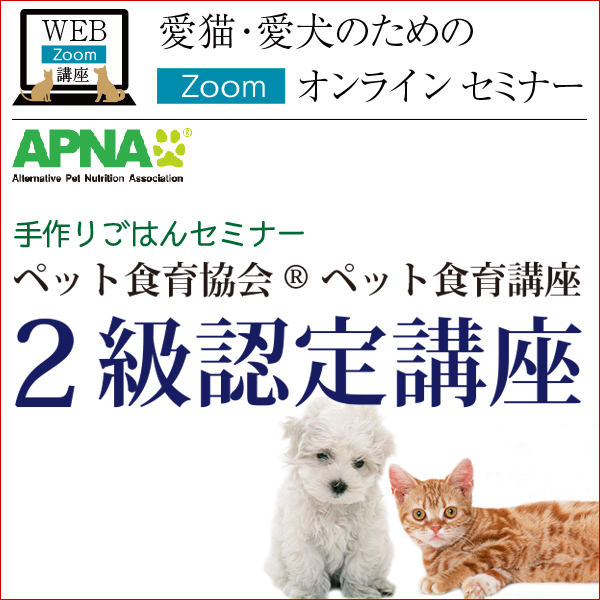 ![]() ペット食育協会® ペット食育講座/2級認定講座 ![]() ![]() 「すべてが興味深い内容だった」 「ますます自信を持って手作りごはんを続けられる」 「ペットフードについてもよくわかった」とおっしゃっていただける「2級認定講座」。 なぜ、「食」が大事なのかが、より深くご理解いただける講座です。 消化のしくみも、より詳しく解説。 「なぁんだ。変なことで不安になっていた」 「変なことを信じていた」というお声をいただく通り、受講いただいた後は「食」について、迷いがなくなります。 APNA(ペット食育協会®)作成の学術論文に基づいたテキストを活用して丁寧にお伝えします。 ![]() 「手作りごはんセミナー〜ペット食育講座・入門講座〜」を受講していただくと、その日から、自信を持って手作りごはんを始めることができますが、さらに一歩、より深く、犬や猫にとっての栄養素についての考え方、年齢別の食事の対処法、ペットフードの歴史やラベルから読み取れることなどを学んでいただくのが、2級講座です。 愛犬さん、愛猫さんのために、食に関する知識、深めませんか?