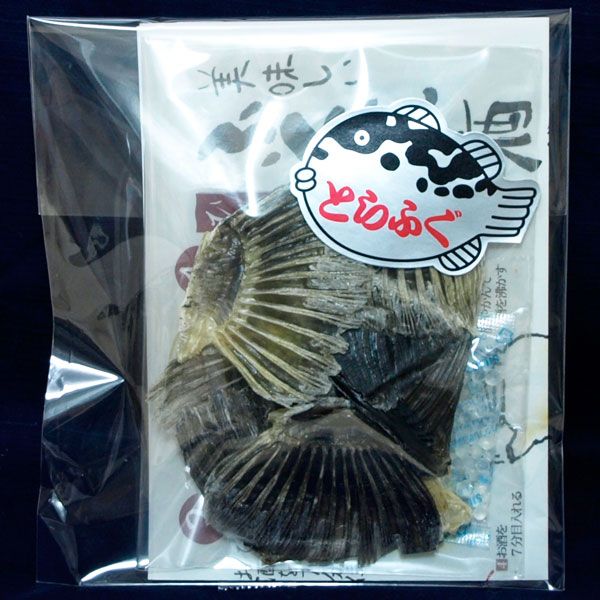 この一袋で約四〜五杯分(一杯一合)の「とらふぐひれ」が入っています。