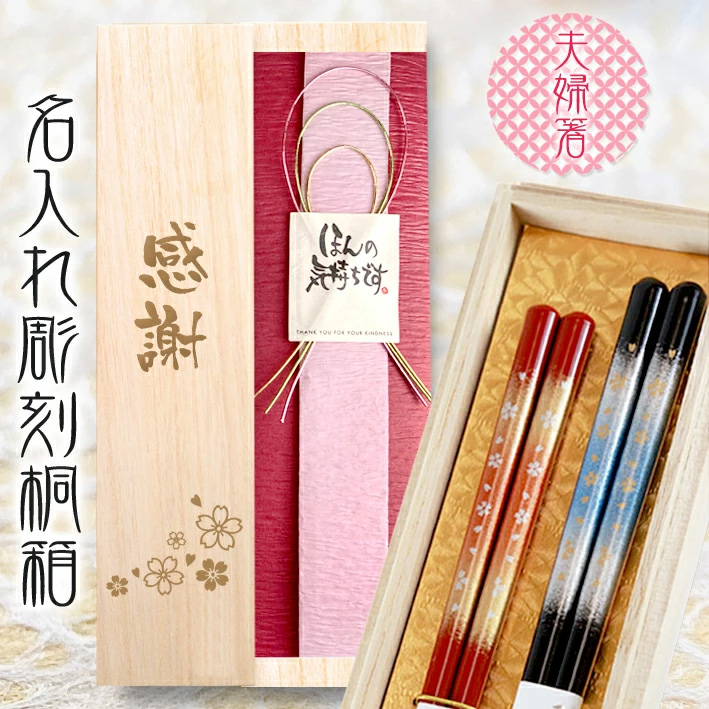 桐箱入り 夫婦箸 天丸霧桜