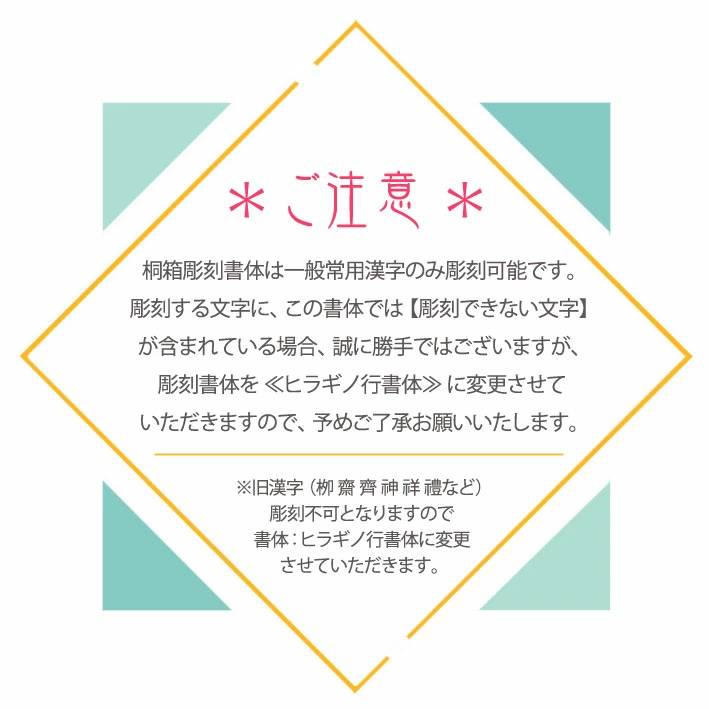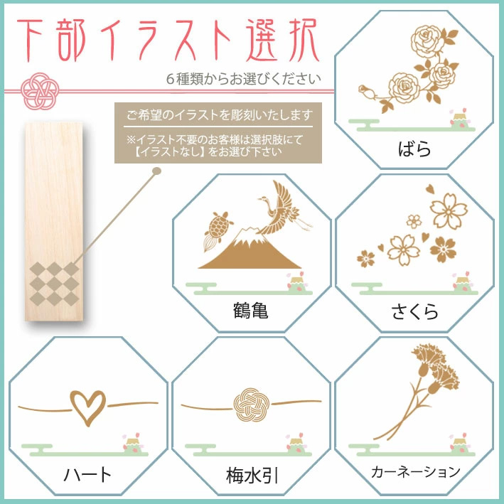 こちらの商品は文字彫刻のオーダー品となりますので、商品画像や説明文、お客様にご選択いただく項目多くなっております。