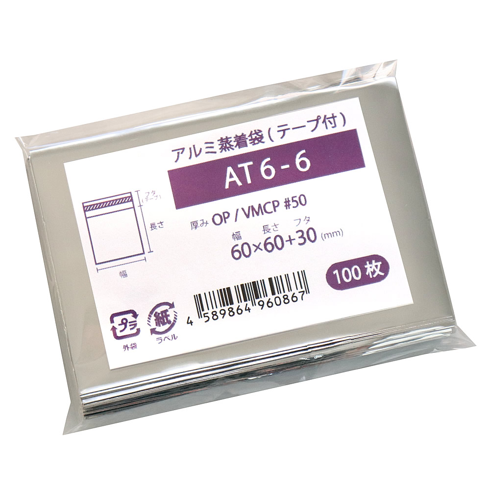 アルミ 蒸着袋 テープ付 60x60mm 100枚 AT6-6