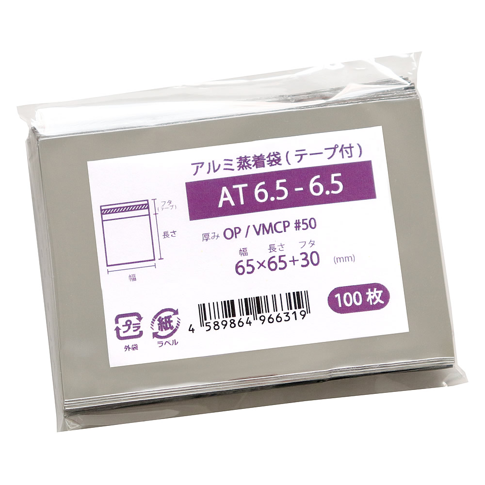 アルミ 蒸着袋 テープ付 65x65mm 100枚 AT6.5-6.5