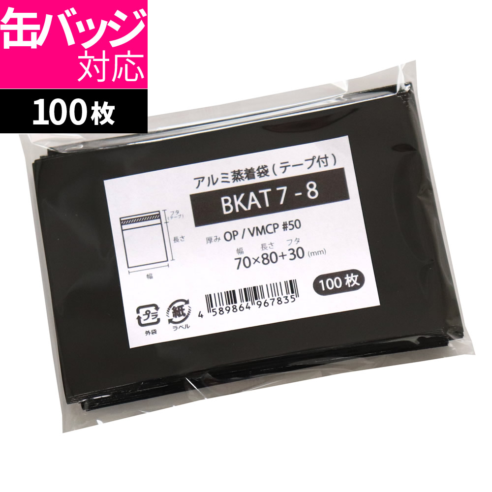 アルミ 蒸着袋 テープ付 70x80mm ブラック 100枚 BKAT7-8