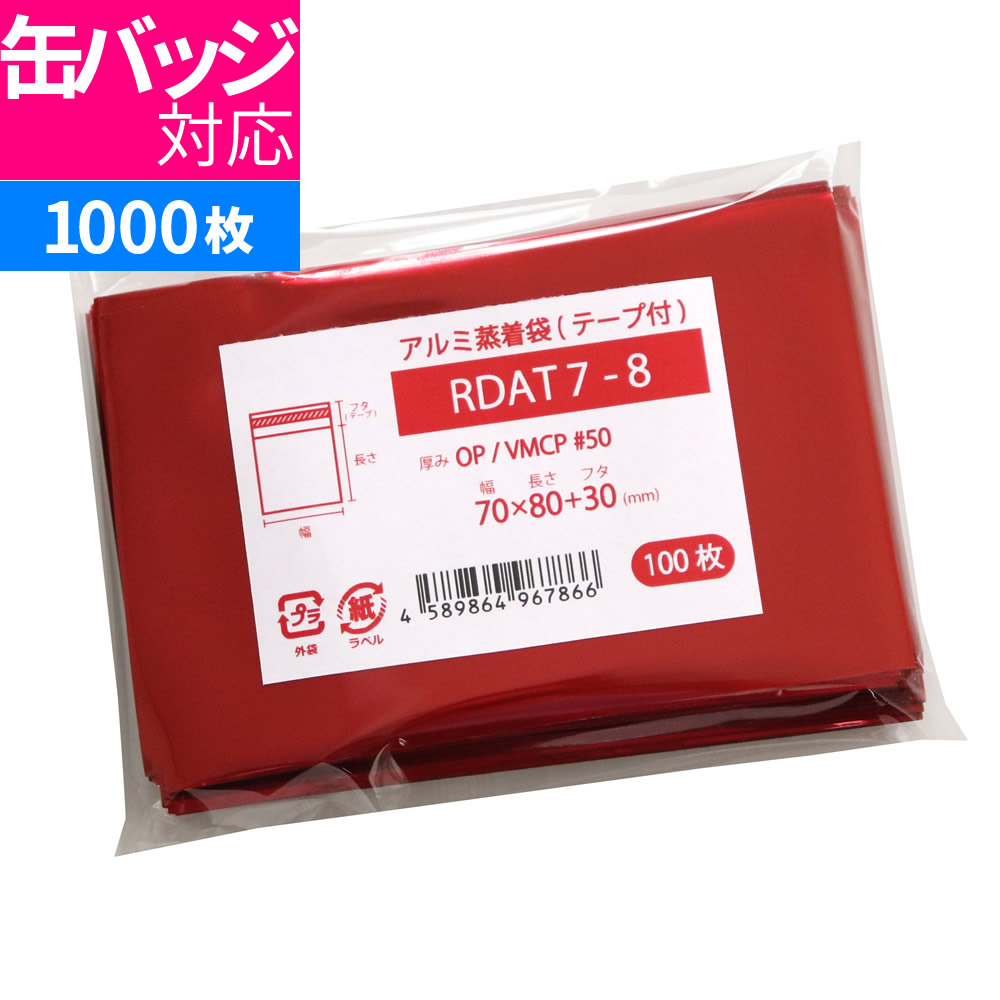 アルミ 蒸着袋 テープ付 70x80mm レッド 1000枚 RDAT7-8